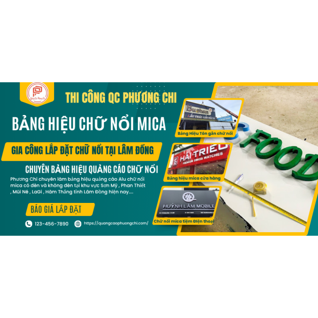 Quảng cáo Phương chi chuyên nhận gia công lắp đặt trọn gói các mẫu bảng hiệu quảng cáo chữ nổi trên nhiều vật tư quảng cáo hiện nay tại các khu vực Phan Thiết , Sơn Mỹ , Mũi Né , La Gi , Hàm Thằng và các huyện khác của Tỉnh Lâm Đồng mới